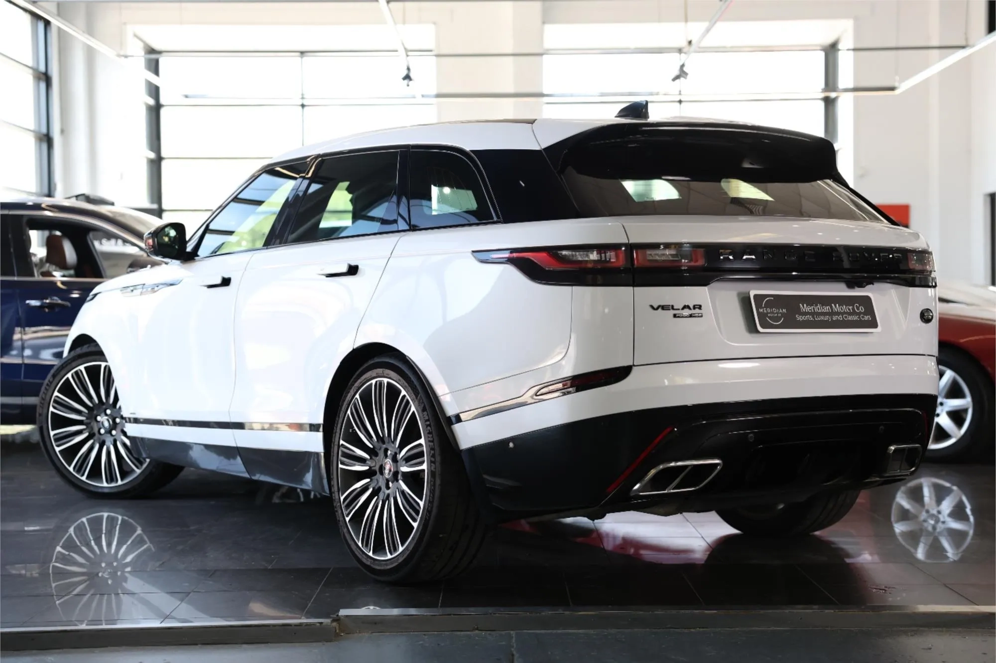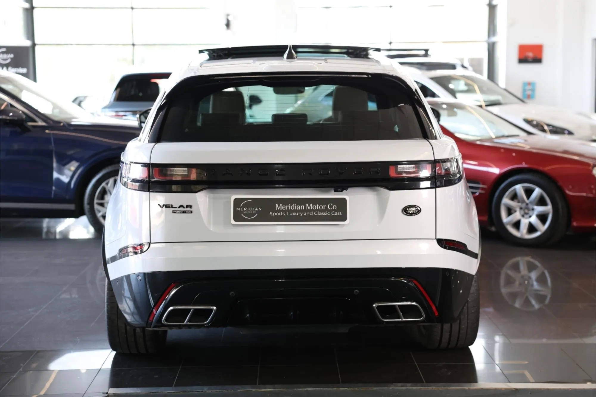 HSE flagship specification, R Dynamic performance styling, 3.0 litre supercharged V6 power, Meridian Surround Sound system, panoramic sunroof, heated and massage seats, head up display, upgraded alloy wheels